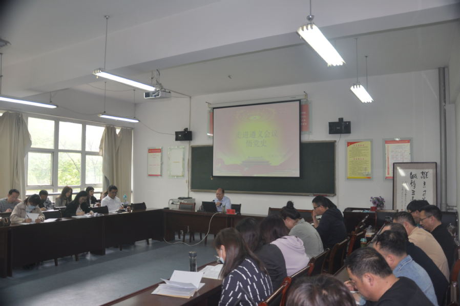 随后,安进以《走进遵义会议悟党史》为题,为全院教职工上了一次生动的党课。安进通过对遵义会议召开的背景原因、会议的经过、会议的意义几个方面内容的介绍,阐述了遵义会议给我们带来的启示就是要理论联系实际、实事求是、独立自主、艰苦奋斗,要将马克思主义原理同中国实际相结合,与时俱进提出和贯彻正确的理论和思想路线。安进进一步明确了这些启示运用到我们的教育教学改革、人才培养和专业建设方面有着重要的现实意义,希望大家在深入学习中学懂悟通,开拓工作新局面。