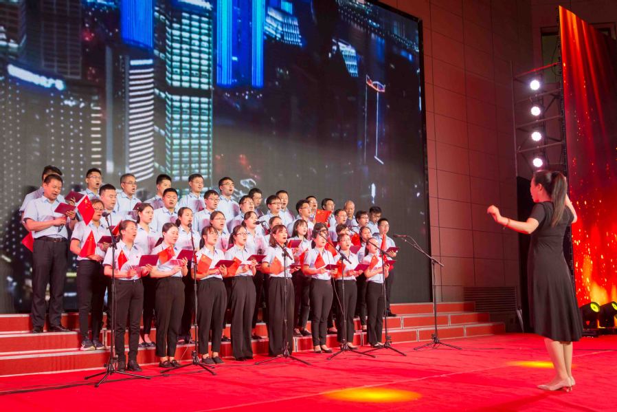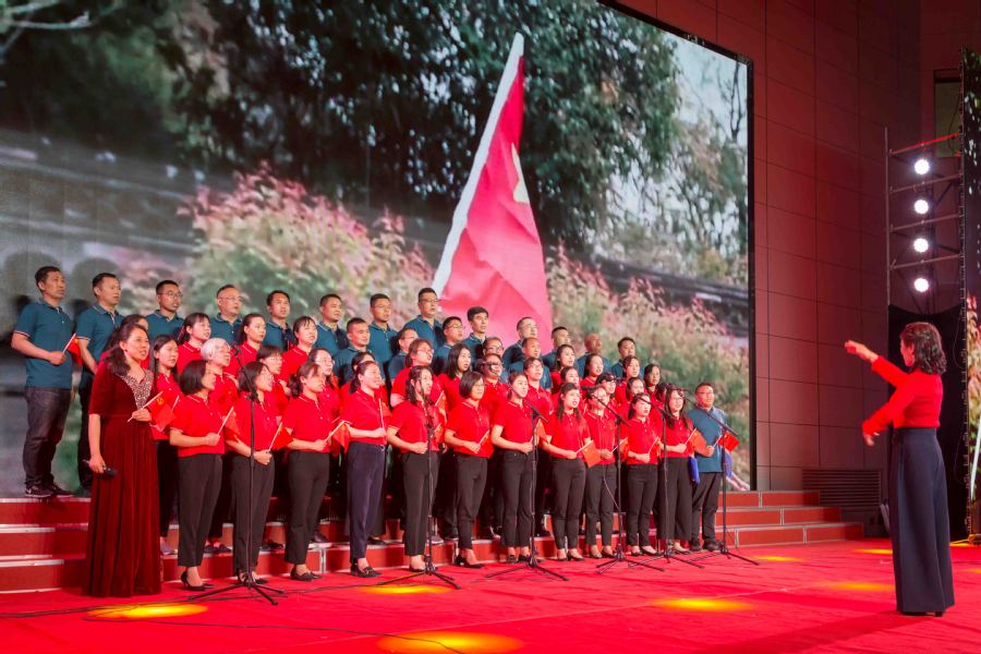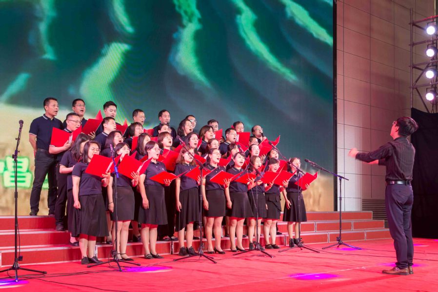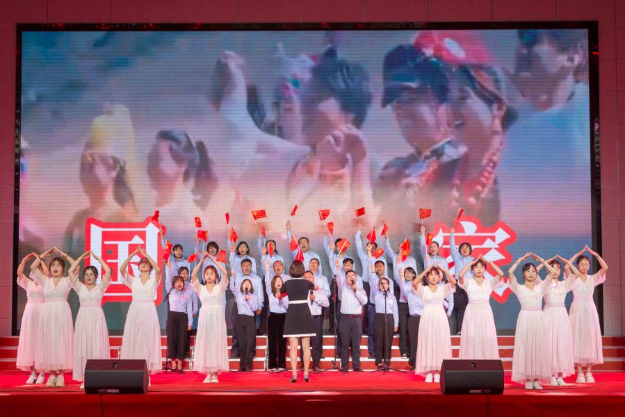 ▲后勤分工会演唱《祖国你好》