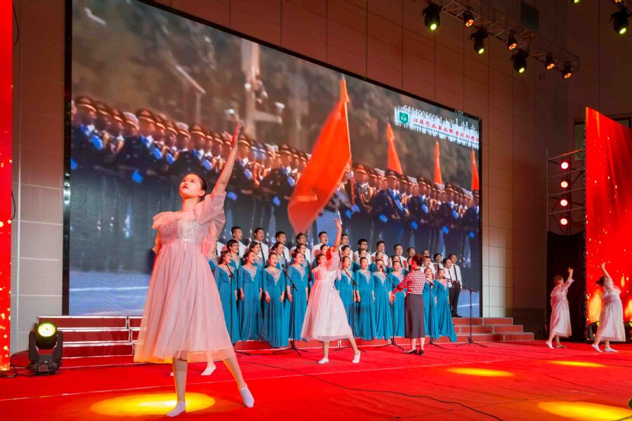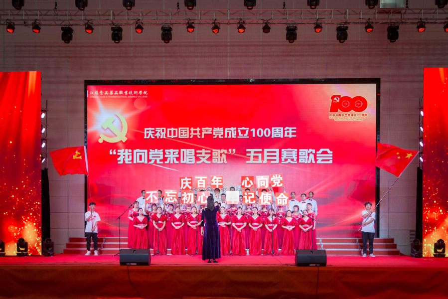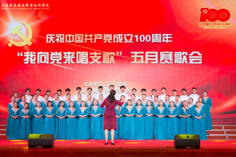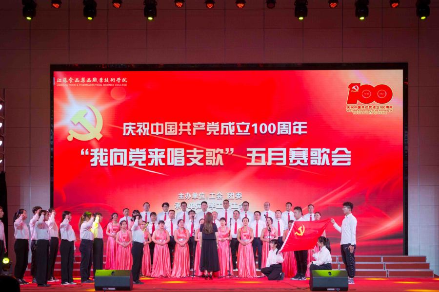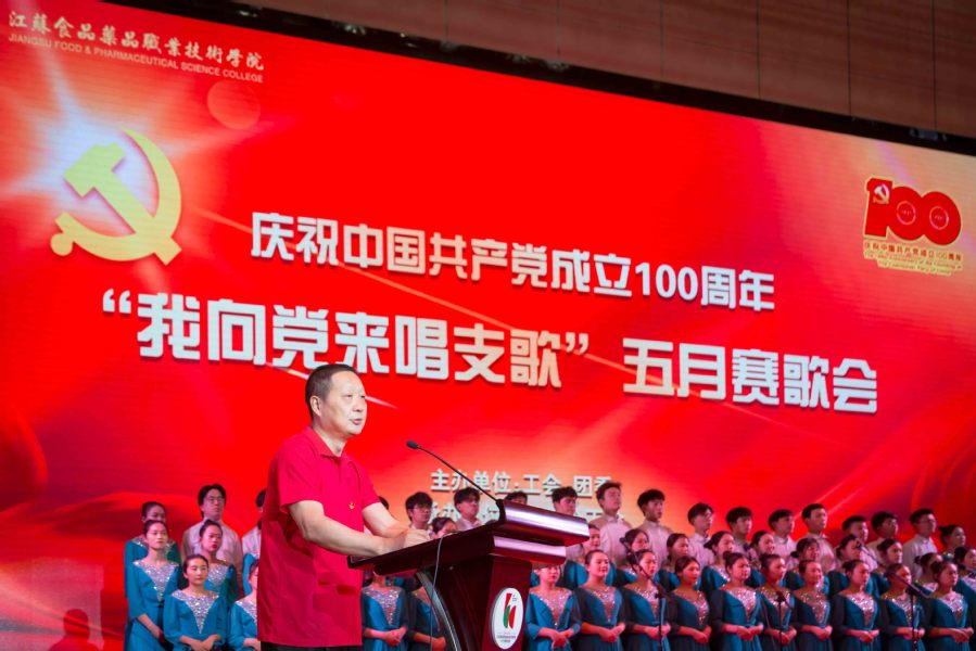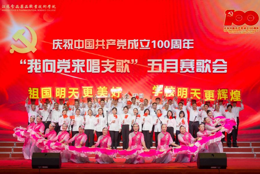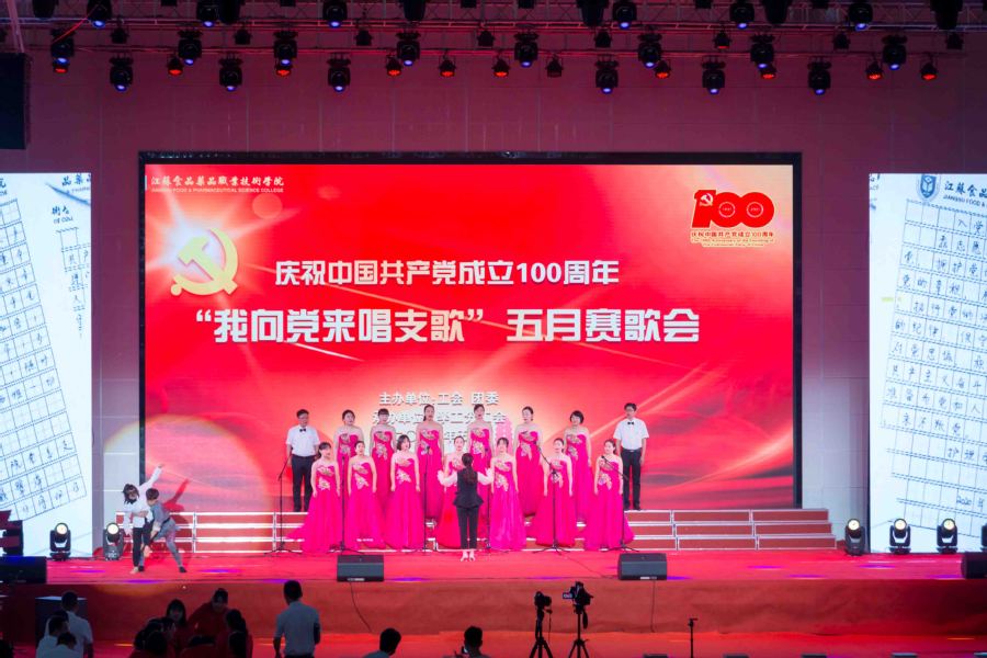 5月25日下午,江苏食品药品职业技术学院庆祝中国共产党成立100周年“我向党来唱支歌”五月赛歌会在大学生活动中心精彩上演。全校师生唱红歌、学党史、颂党恩、跟党走,用歌声回顾党的伟大历程,用旋律致敬百年峥嵘岁月。全体校领导出席歌会。