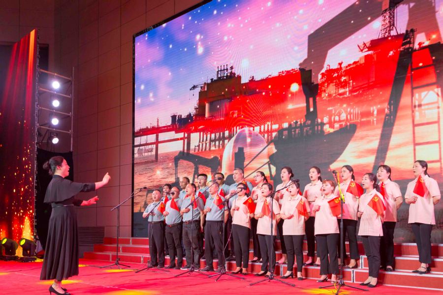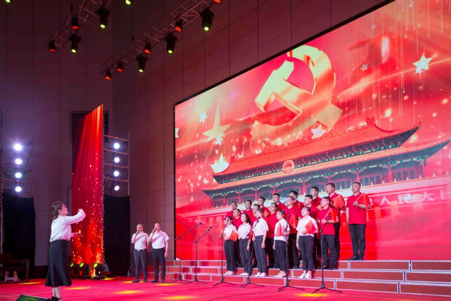 赛歌会在大学生艺术团《光荣啊中国共青团》《爱我中华》中拉开序幕,展示了青年学子爱党爱国的精神风貌。华丽的舞台灯光、欢快的旋律节奏,把观众带入庆祝中国共产党成立100周年喜庆的氛围中。各分工会带来的《没有共产党就没有新中国》《歌唱祖国》《我和我的祖国》《向往》《军民大生产》《唱支山歌给党听》等大合唱歌曲气势恢宏,赢得阵阵热烈掌声,不断将赛歌会推向高潮,将观众带入中国共产党领导中国人民谋求民族独立与解放,实现中华民族伟大复兴的百年征程之中。