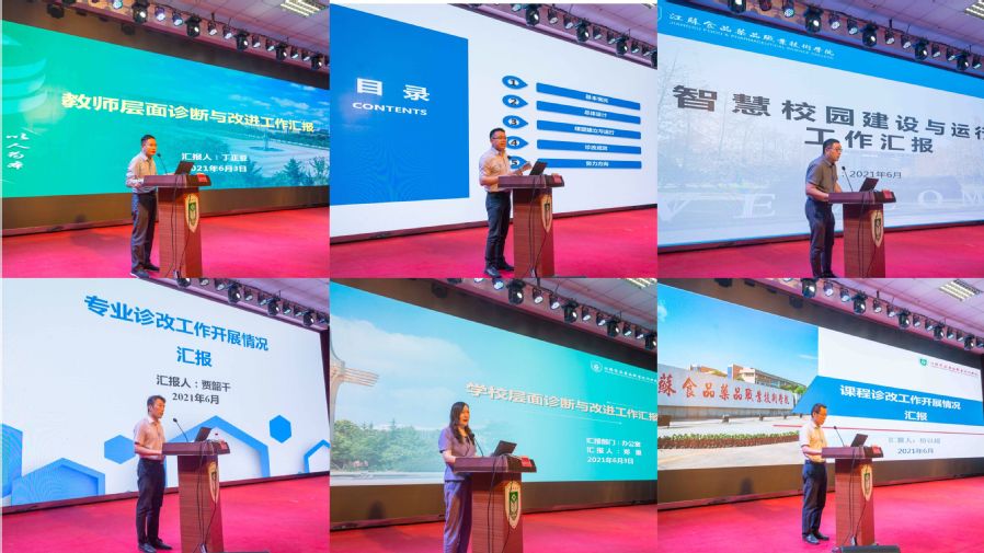 随后,学校、专业、课程、教师、学生五个层面和信息化平台负责人分别介绍我校近几年来诊改工作情况。