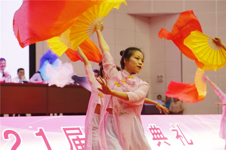 “经历大一的纯真年代,告别大二的紧张与忙碌,我们来到了今日大三的依依别离。” 健康学院体育181班韩宗谕代表全体毕业生发言,她表示三年大学时光已化作无形胶片,将永远珍藏在脑海中,感谢母校的关心、教育、辛劳、鼓励,激励着每一位毕业生在社会的风浪中勇敢前行。