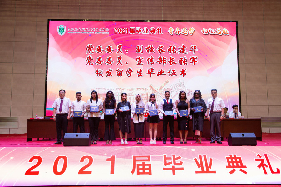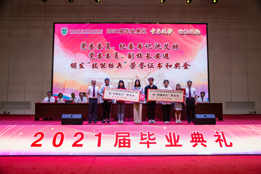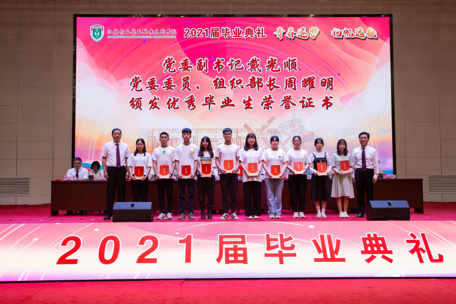 毕业纪念片《最好的我们》与同学们一起回顾了三年的校园生活。在庄严的国歌声中,2020届毕业典礼拉开了序幕。党委副书记戴光顺宣读《江苏食品药品职业技术学院关于准予2021届全日制普通专科学生毕业的决定》和《江苏食品药品职业技术学院关于表彰2021届优秀毕业生的决定》。