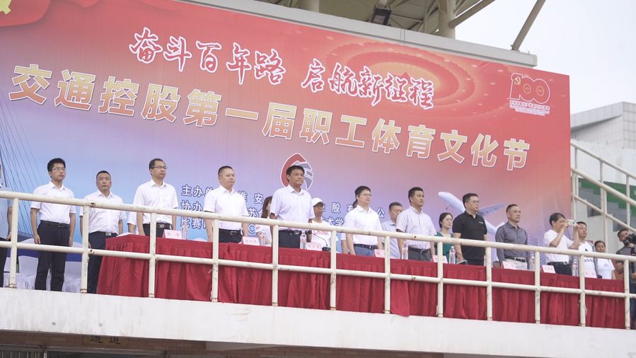 6月18日上午,“奋斗百年路·启航新征程”——交通控股第一届职工体育文化节在我校举行。淮安市交通控股公司总经理张惠扬、党委书记耿良道、淮安市纪委监委派驻国联纪检组组长许添翔等一行领导出席开幕式。校长冯锋代表学校党委和行政致欢迎辞。