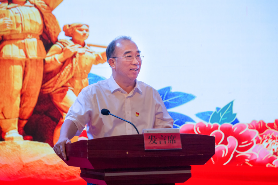 陶书中代表校党委向老党员、受表彰的先进集体和优秀个人致以崇高的敬意和热烈的祝贺。陶书中表示,在中国共产党百年华诞之际,党史学习教育正在全党上下如火如荼地开展,回顾百年党史,每一段都值得铭记,每一页都值得珍藏。在党的领导下,学校61年来始终坚守初心使命,学校党的建设和事业发展都取得了显著成绩。党的百年,既是光辉的丰碑,又是崭新的起点,他希望全校党员自觉地把党史学习教育作为锤炼党性的实践课堂,作为改进作风的重要抓手,在学史明理中提高政治判断力,在学史增信、学史崇德中提高政治领悟力,在学史力行中提高政治执行力。陶书中希望受表彰的先进集体和个人始终如一,坚定信念,立足本职,用实际行动践行共产党人先进本色,不断用习近平新时代中国特色社会主义思想武装头脑、指导实践、推动工作。陶书中指出当前学校“双高”建设进入了船到中流浪更急、人到半山路更陡的时候,全校上下需进一步解放思想、改革创新、真抓实干,以高质量发展为着力点和突破口,在党史学习中凝心聚力出实招,为党和国家培养更多的高素质人才,以最坚定、最自觉、最实在的行动向党的百年华诞献礼。