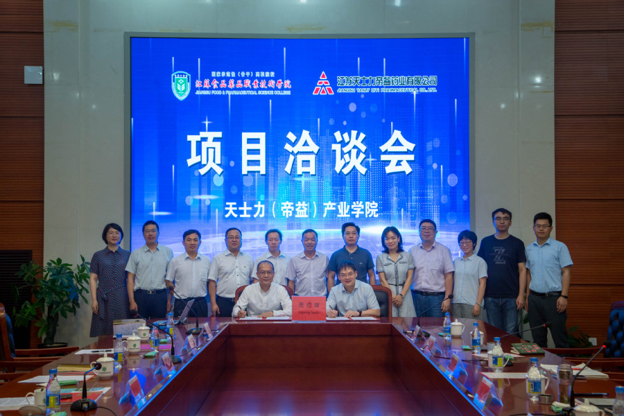 7月7日下午,我校与江苏天士力帝益药业有限公司校企合作项目签约在学校多功能报告厅举行。江苏天士力帝益药业有限公司总经理蔡金勇、常务副总经理杨国军出席签约仪式,校长冯锋主持会议。