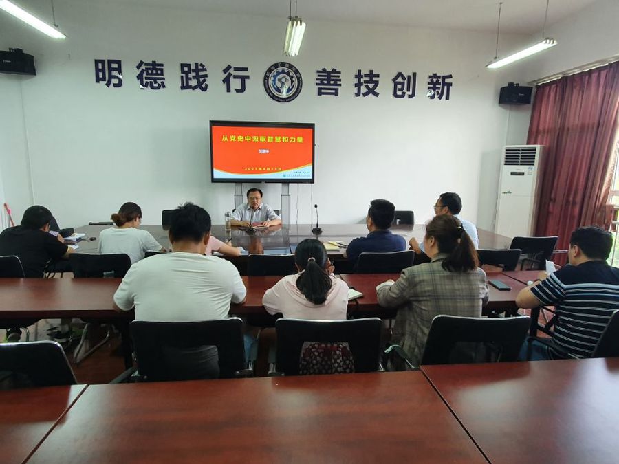 在中国共产党喜迎百年华诞之际,近日,校党委委员、副校长张建华在机电学院会议室以《从党史中汲取智慧和力量》为题为学院全体党员讲授了专题党课。