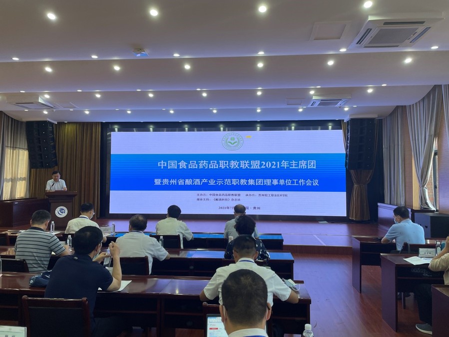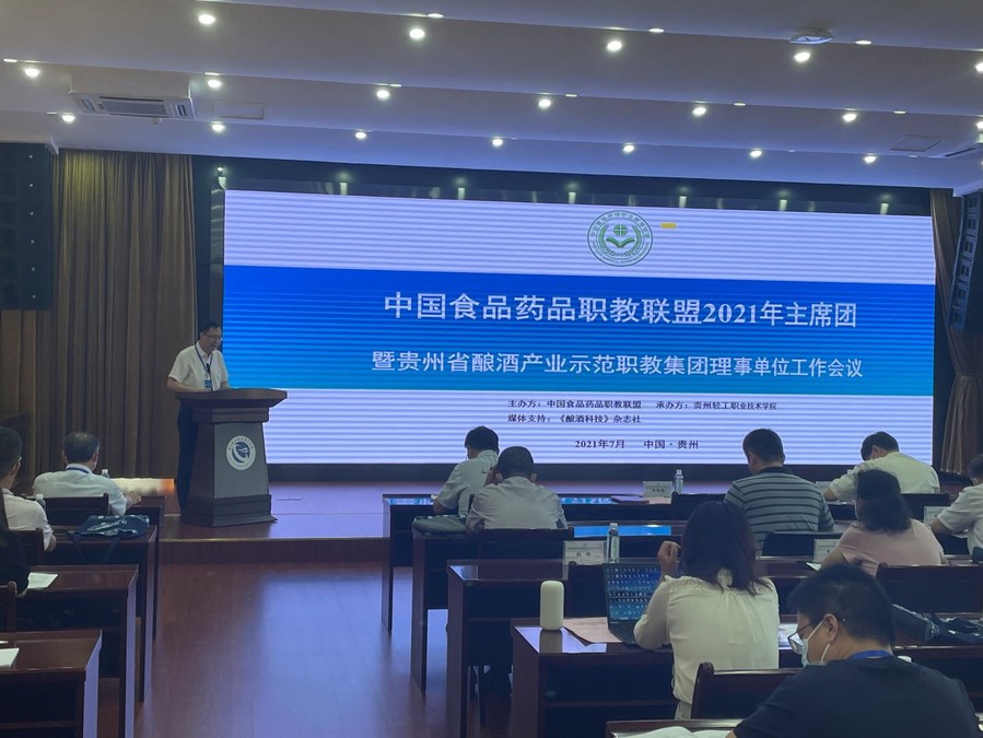 2021年7月30日-8月1日,由中国食品药品职教联盟主办的“中国食品药品职教联盟2021年主席团会议”在贵州轻工职业技术学院成功举行。本次会议以“新时代职业教育本科专业建设实践与探索”为主题,旨在加强中国食品药品联盟成员单位间的合作交流、经验互享,持续推进联盟工作,同时搭建与贵州省知名酿酒企业沟通交流的桥梁,共话新时代深化产教融合,探索职业教育本科人才培养,助推食品药品行业高质量发展。联盟及集团成员单位江苏食品药品职业技术学院、广东农工商职业技术学院、山东药品食品职业学院、玉溪农业职业技术学院、楚雄医药高等专科学校、湖南食品药品职业学院、厦门海洋职业技术学院、广西农业职业技术学院、漳州科技职业学院、内蒙古农业大学职业技术学院、四川工商职业技术学院、贵州食品工程职业学院、贵州省酿酒工业协会和贵州省内部分酿酒企业等20余家单位代表出席了会议。我校党委书记陶书中、教务处、食品学院、制药学院相关负责人参与了本次会议。