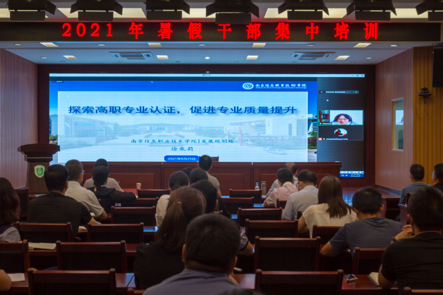 按照疫情防控要求,培训采取线上线下相结合的方式进行。南京信息工程大学副校长邓志良教授以“‘双高’建设,引领学校高质量发展”为题作了专题报告,并系统性地介绍了南京信息工程大学在人才队伍建设、产教融合等方面的经验做法。南方医科大学史瑞芬教授以“让医学专业课程课堂思政/人文飘香”为题,就专业课程教学如何与社会主义核心价值培育、党史学习、职业教育养成、中华优秀传统文化弘扬等思政元素相结合作了专题讲座。培训期间,教学系统干部、专业带头(负责)人在线听取了南京信息职业技术学院徐胤莉教授作的《悉尼协议》专题报告,管理干部集中收看了廉政专题教育片。