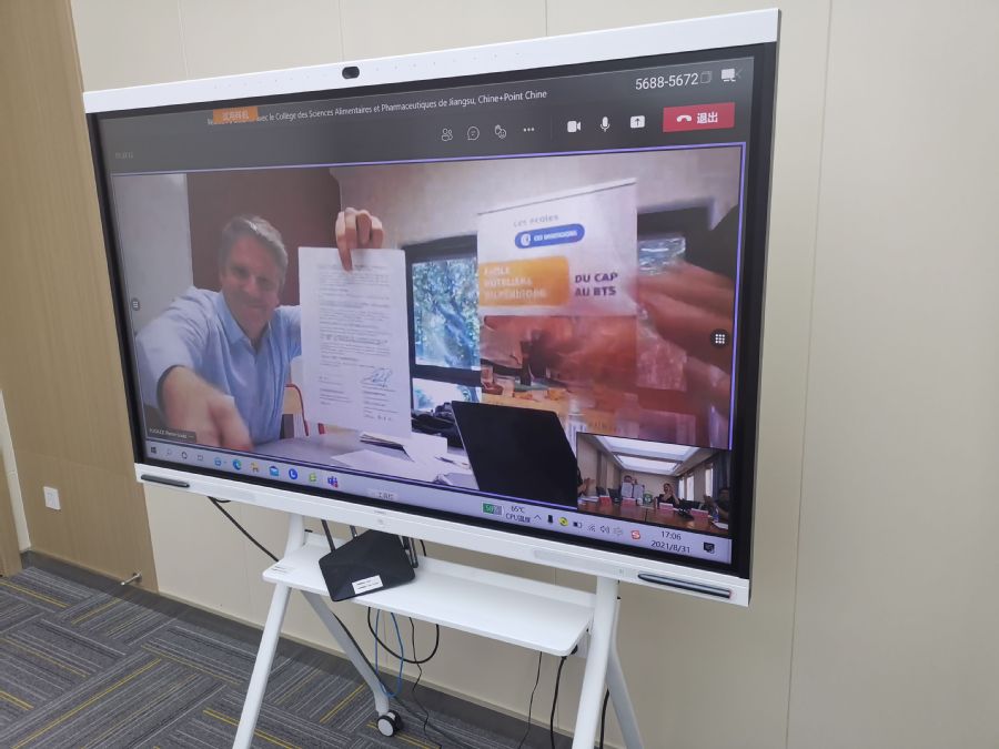 8月31日下午,我校与法国品阁高等厨艺学院相聚云端,签署两校合作协议,共话未来合作的举措与方向。法国多尔多涅省工商会会长Pierre VULIN、法国品阁高等厨艺学院校长Cathy RANOUX,我校校长冯锋、副校长翟玮玮参加会议。