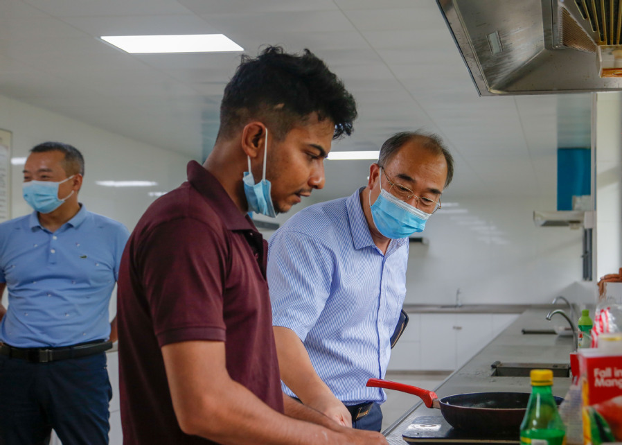 两位校领导与留学生亲切交谈,深入了解疫情防控、课程学习、校内就餐、宿舍生活等方面情况,勉励留学生珍惜学习机会,严格要求自己,按时保质完成学习任务。提醒大家要遵守学校管理规定,增强安全意识,持续做好疫情防控工作。希望留学生把握时间、加强交流、相互帮助、共同进步,成为中外友好的使者和桥梁。