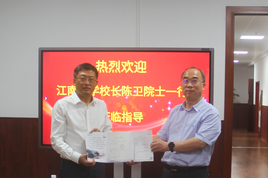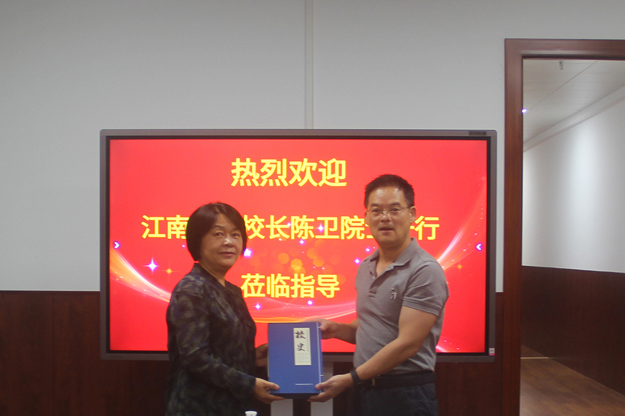 10月2日,中国工程院院士、江南大学校长陈卫一行来访我校,党委书记陶书中、校长冯锋,副校长翟玮玮、张建华热情接待了来宾。