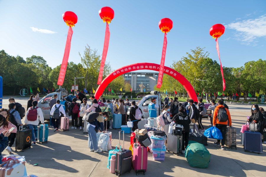 按照我校迎新方案,入校需提供健康码、行程码、核酸报告,行李也要进行消毒后才可进入校园,校门口的一顶顶蓝棚成为了新生和家长们的暂别之地。与送别亲友告别后,21级新生迈向了第一次见面的校园,而学校内热情洋溢的志愿者、老师、工作人员,各学院独具创新的迎新方式,都让他们感受到了浓浓的暖意,充满对校园生活的向往。