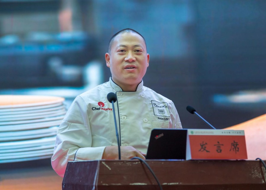 聘任及揭牌仪式结束后,林韦龙大师作了他的个人经历分享会,他从他的学习经历、工作经历、执裁经历、活动经历、个人菜品分享、他的博古斯之路给大家作了详细的介绍,并给大学生的职业生涯规划提出了他的个人建议。他强调在校学习期间要时刻不忘外语的重要性,要想让中国厨师走向国际舞台,语言沟通十分重要。还要注重理论知识学习,加强烹饪基本功的练习,多参加一些烹饪技能大赛,以赛促学,提升自己。