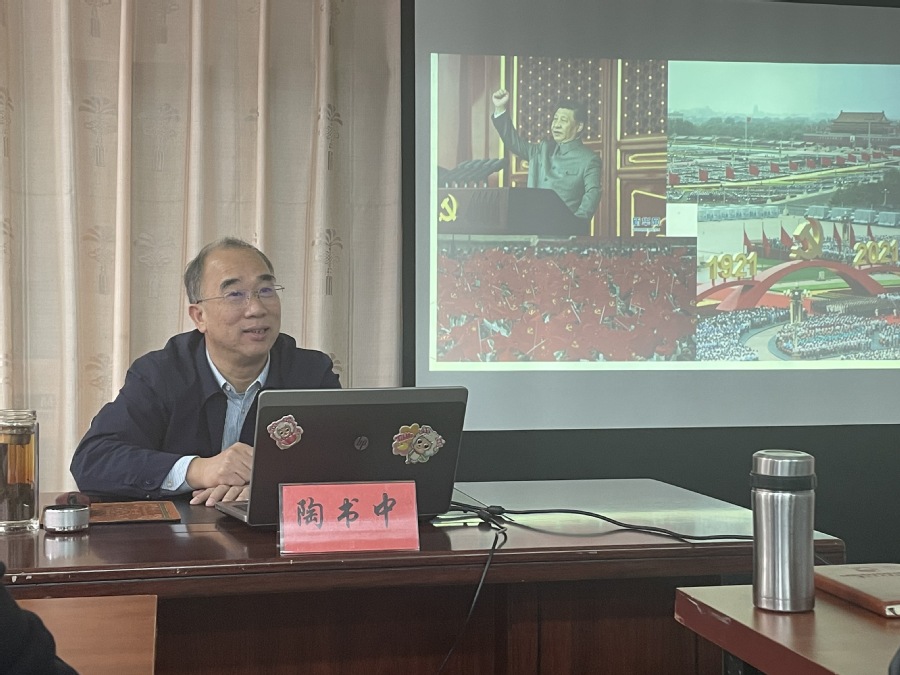 为进一步学习贯彻习近平总书记“七一”重要讲话,弘扬伟大建党精神,引导广大师生党员牢记初心,勇担使命,敢于斗争,敢于胜利,10月26日上午,校党委书记陶书中在酒店学院系部会议室C306,围绕“弘扬建党精神,坚持九个必须”,为酒店学院党总支师生党员上了一堂生动的党史专题党课。
