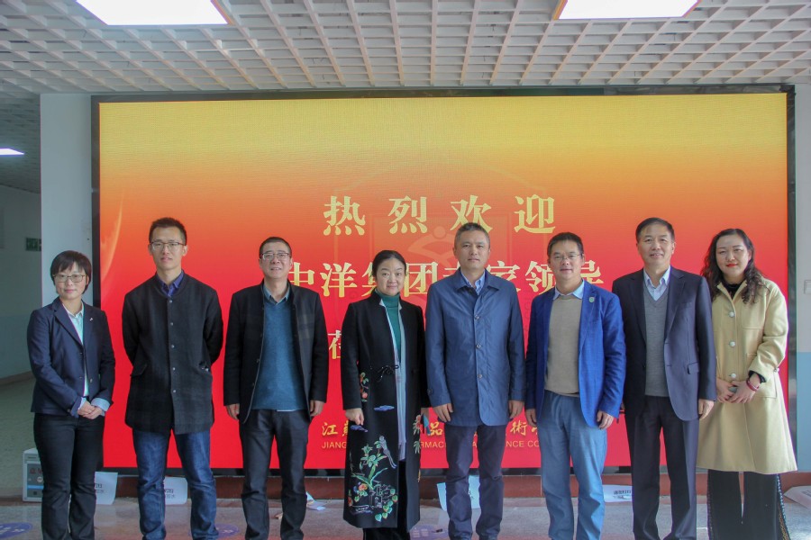 11月18日,江苏中洋集团行政总监、中洋生物科技(上海)股份有限公司总经理叶建华一行来访我校,我校校长冯锋、副校长翟玮玮热情接待了来宾。