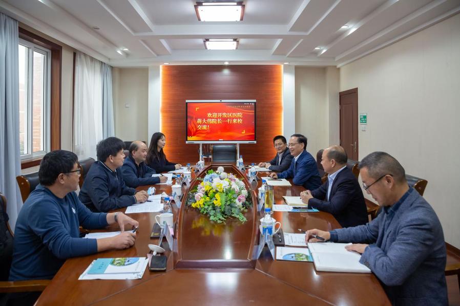 10月26日下午,淮安经济技术开发区医院蒋大伟院长一行来校洽谈交流。校长薛宇、副校长安进热情接待了来宾。