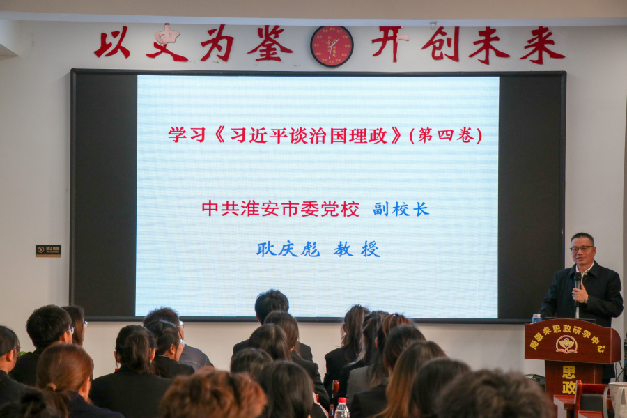 返回周恩来思政研学中心的研学大讲堂,正式开始当日课程。分别由中共淮安市委党校经济学教研部主任梁文凤和中共淮安市委党校副校长耿庆彪教授讲授了《周恩来的人民群众观》和《习近平谈治国理政》第四卷。