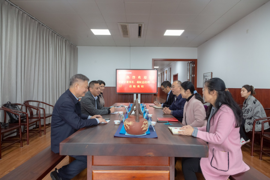 11月11日上午,苏州恒亦达智能设备有限公司董事长李清宇、江苏佑彩智能制造有限公司总经理蒋虹一行来访我校,校党委书记陶书中、党委副书记翟玮玮热情接待了来宾。