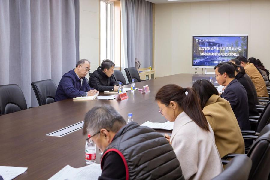11月16日,学校召开江苏省食品产业高质量发展研究协同创新培育基地建设推进会,就结题标准、决策咨询报告撰写要领等方面进行研讨。校党委书记陶书中、副校长贾韶千出席会议。