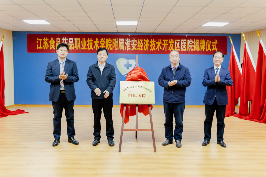 11月16日下午,“江苏食品药品职业技术学院附属淮安经济技术开发区医院”揭牌仪式在淮安经济技术开发区医院举行。淮安市委常委、淮安经济技术开发区党工委书记徐子佳,校党委书记陶书中,校长薛宇,淮安经济技术开发区医院董事长蒋大伟共同为“江苏食品药品职业技术学院附属淮安经济技术开发区医院”揭牌。淮安经济技术开发区社会事业局局长孙大高,副校长安进、贾韶千,淮安市卫健委科教处处长苏洁,淮安经济技术开发区医院副院长赵颖等参加仪式。揭牌仪式由薛宇主持。