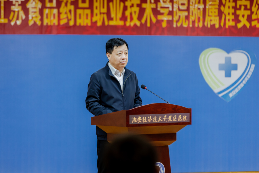 徐子佳代表经开区党工委、管委会,向江苏食品药品职业技术学院和开发区医院表示祝贺。他指出,江苏食品药品职业技术学院和开发区医院达成战略合作,不仅是医院名称有所变化,更预示校院双方在医院建设、人才培养、医疗科研等方面,形成资源共享、优势互补、互利共赢的良好局面,也必将迎来一段新的更加美好的发展历程。徐子佳还提出三点期望:面向新征程,期望双方能够真正各取所长、好上加好;稳落脚点,期望双方能够始终坚守初心、为民服务;打造共同体,期望双方能够更好融入地方、服务大局。