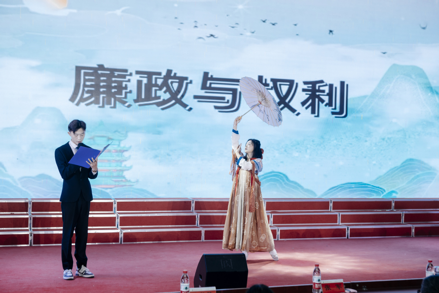 参赛代表队的作品紧紧围绕“崇廉尚洁 三清校园”主题展开,既贴近生活,又富有“廉”味,现场不仅赢得了观众的阵阵喝彩,也充分展现了当代大学生崇廉尚美的精神风貌。信息工程学院的《廉政与权利》,道出了清廉与中华崛起的渊源;制药工程学院和民族学院的《烈烈清风》,娓娓道来,就像一首激情昂扬的诗,浸润着纯洁的心田;酒店学院的《清廉之气永相传》,朗诵者声情并茂、感情真挚地朗诵让观众体验到了廉政诗文的魅力;药学院的《陋室铭》让大家深刻感受到传统廉洁文化的感染力和高尚情怀的自然流淌;护理学院的《清廉颂》,展现了医护人员的清廉风貌,讴歌了无私奉献的高尚医德;健康学院的《廉洁校园》,唱响众志成城构筑廉洁校园的最强音;财贸学院的《水是最好的天平》,挖掘淮安优秀传统文化和革命文化的廉洁基因,讲好运河故事,传承恩来精神,引导党员干部不断筑牢廉洁从政的思想自觉,作品精心编排了浸润氛围的舞者以及泼墨挥毫的书法爱好者,将遒劲有力的“崇廉尚洁”跃然纸上,还制作了美轮美奂的音画背景;机电工程学院的《廉洁赞歌》,阐释了廉洁是一种高尚的品格,值得我们每一个人去赞颂;食品学院的《廉洁颂》,大气磅礴,告诉我们廉洁清正永远是时代的呼唤,廉政永远是人民的期盼。