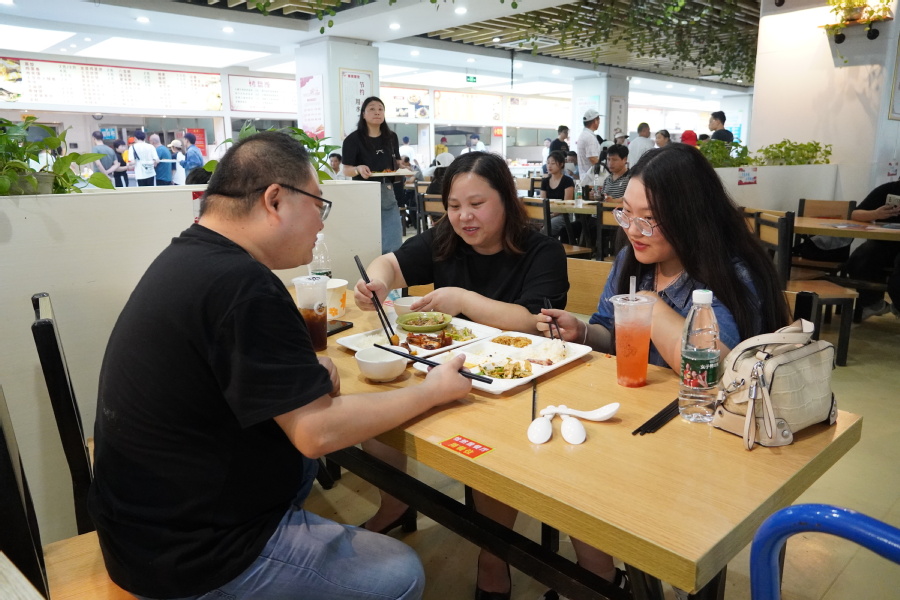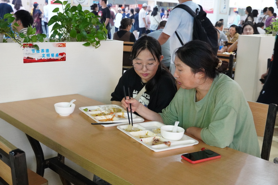 学生和亲友在餐厅用餐