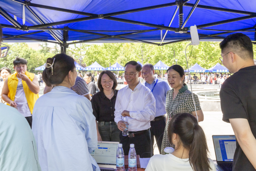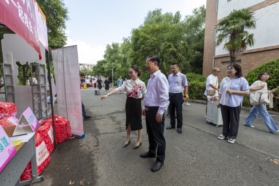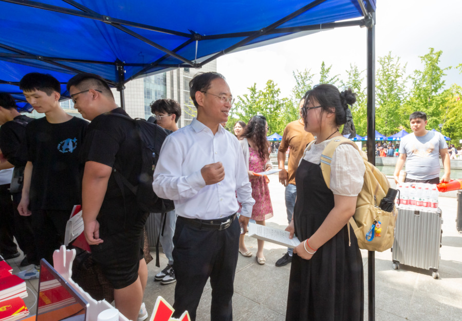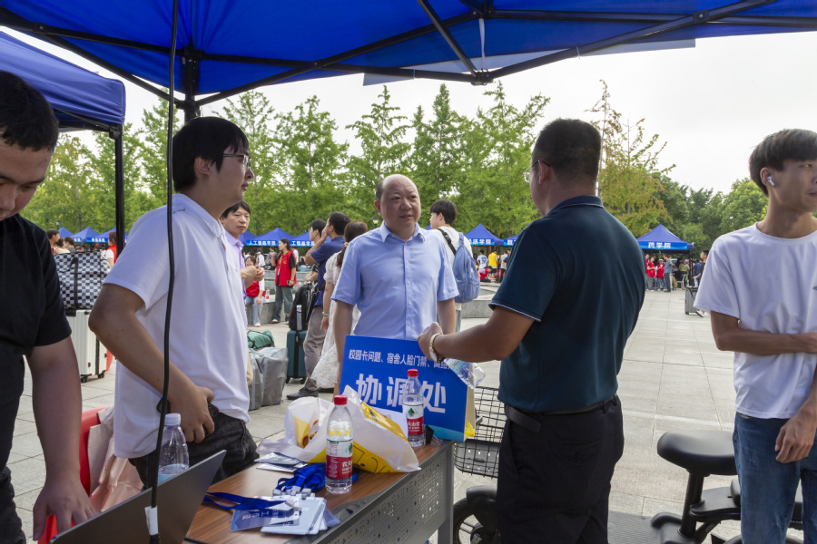 9月6日上午,党委书记薛宇、校长翟玮玮、副校长安进来到迎新现场,详细了解报到实时进展情况,与报到新生、家长亲切交谈,慰问参加迎新工作的师生员工及迎新志愿者们。