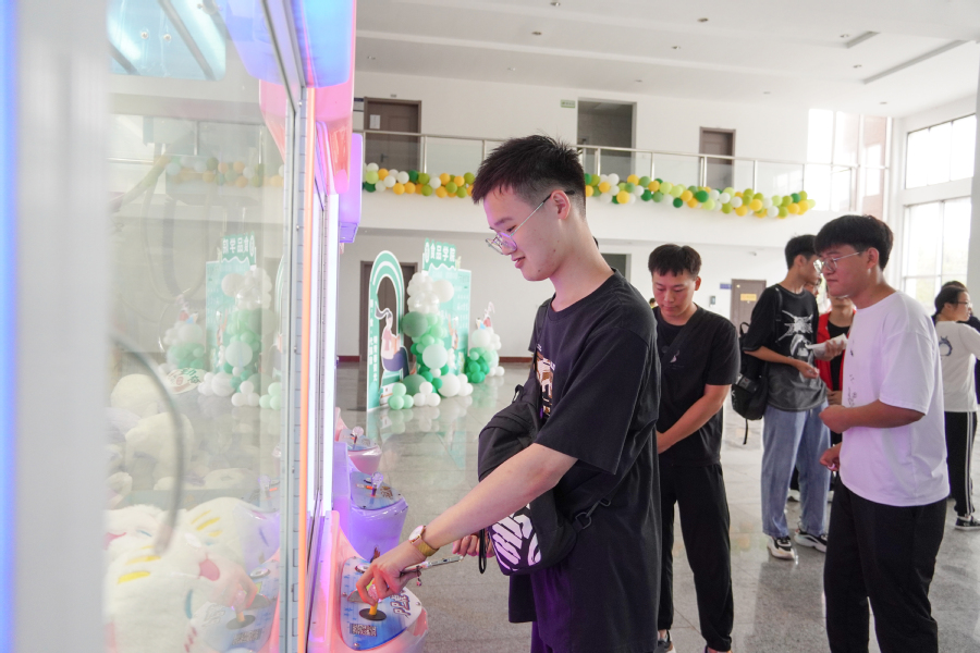 食品学院在互动体验区设置了10台娃娃机,投放了800多个“萌宠娃娃”,让学院萌新们在开学第一天就实现抓娃娃自由,每个“娃娃”上都贴有勤奋、技能、阅读、创新、成才等学校大学生“十个一”工程字样,寓意抓取的不仅仅是抓娃娃的快乐,更是未来努力和学习的目标。