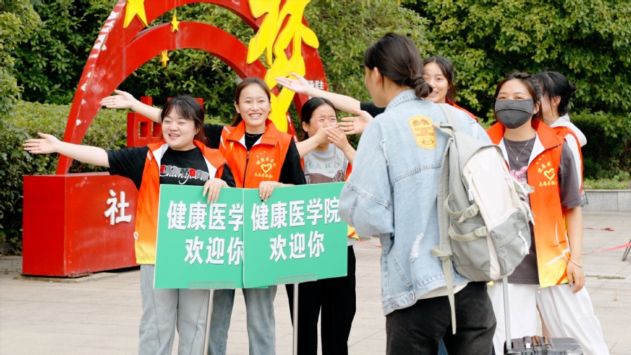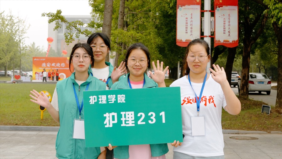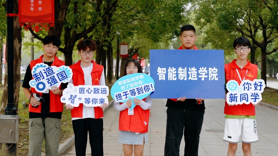 迎新标语、气球、打卡背景板、签到墙……校园装扮一新,处处洋溢着喜庆热烈的氛围。