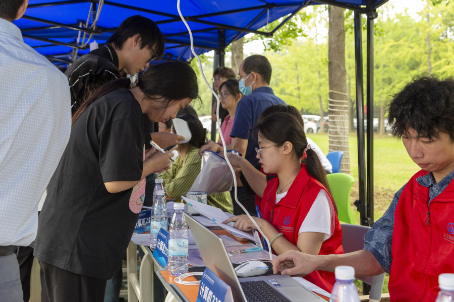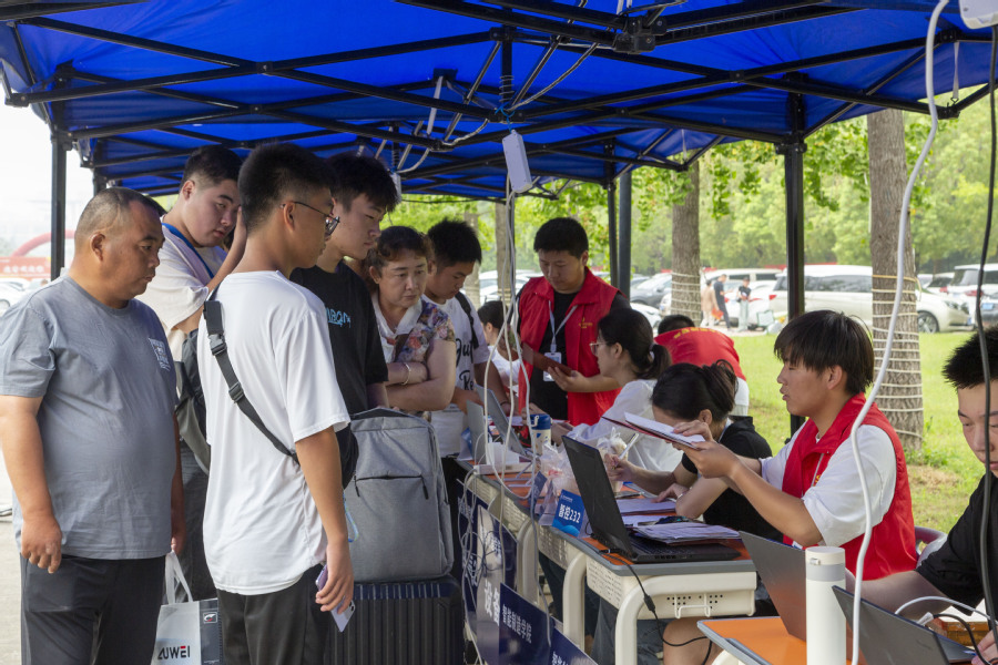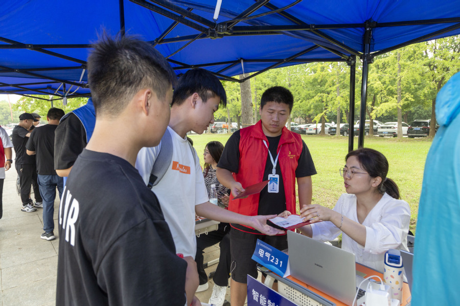 各二级学院在图书馆北广场设立报到接待点,新生报到前通过迎新系统完成网上报到、个人信息采集、缴费等,入校后在各学院接待点简易便捷地办理报到登记手续,领取入学材料、爱心礼包、入学纪念品等。各职能部门分工明确、通力合作,扎实做好服务保障,用心助力新生快速融入大学生活。