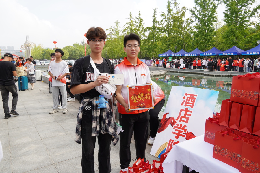 酒店学院设置了抽奖和开盲盒环节,抽奖箱里写满了对新生的祝福,盲盒中的实用小礼品给新生们带来了惊喜与温暖。