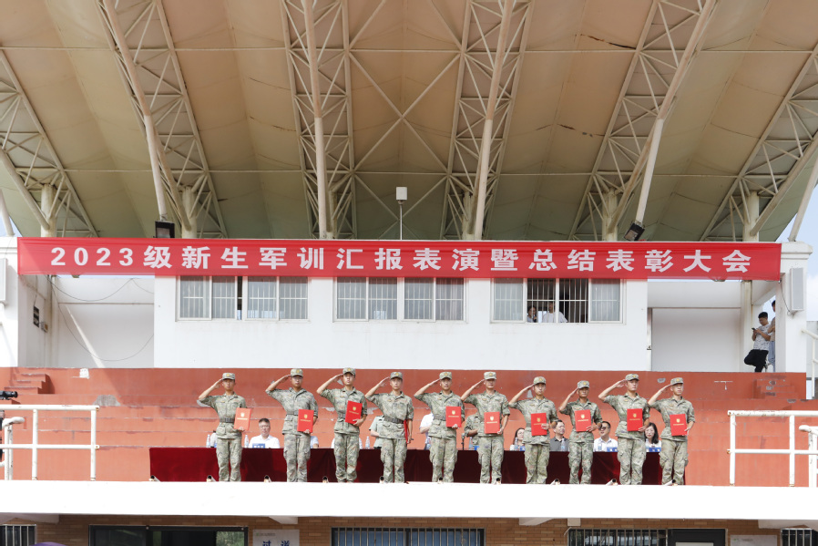 9月17日,我校2023级新生军训会操表演暨表彰大会在田径运动场举行。学校党委副书记安进、73106部队严俊教导员出席大会。大会由武装部长李金霞主持。