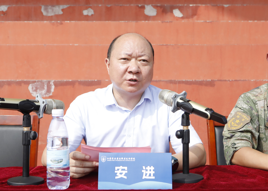 党委副书记安进在讲话中代表学校向73106部队全体承训教官辛苦付出表示衷心的感谢,向参加军训的师生致以崇高的敬意,向取得优异成绩、受到表彰的单位和个人表示热烈的祝贺。安进表示,全体新生按照军训计划,从严训练,在日晒风吹中铸就坚强,在挥洒汗水中收获成长,展现了我校新一届学子的良好精神风貌。他希望同学们把军训中收获的优良作风和意志品格贯穿到大学三年的学习生活中去,努力成长为社会主义事业的合格建设者和可靠接班人。