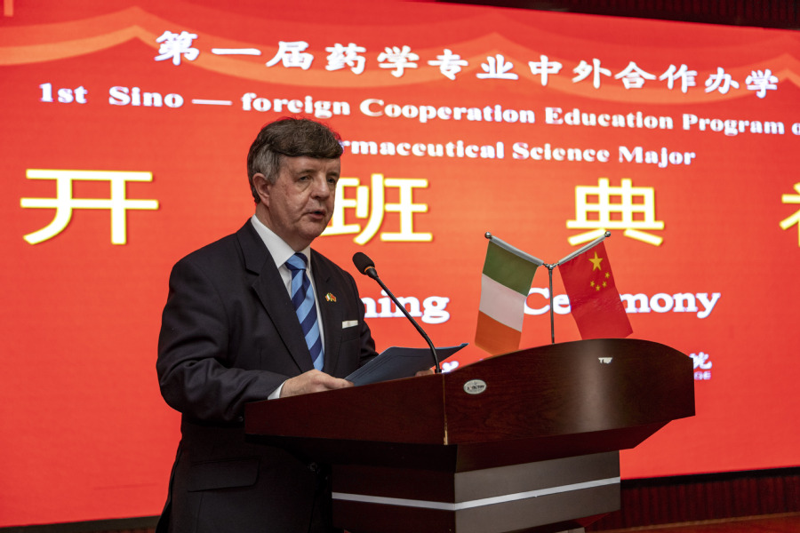 10月10日,我校与爱尔兰大西洋理工大学药学专业中外合作办学项目正式开班。大西洋理工大学生命科学院院长内维尔·麦克莱纳根携代表团莅临我校,参加药学专业中外合作办学项目开班典礼,与我校师生一同见证这一重要时刻。