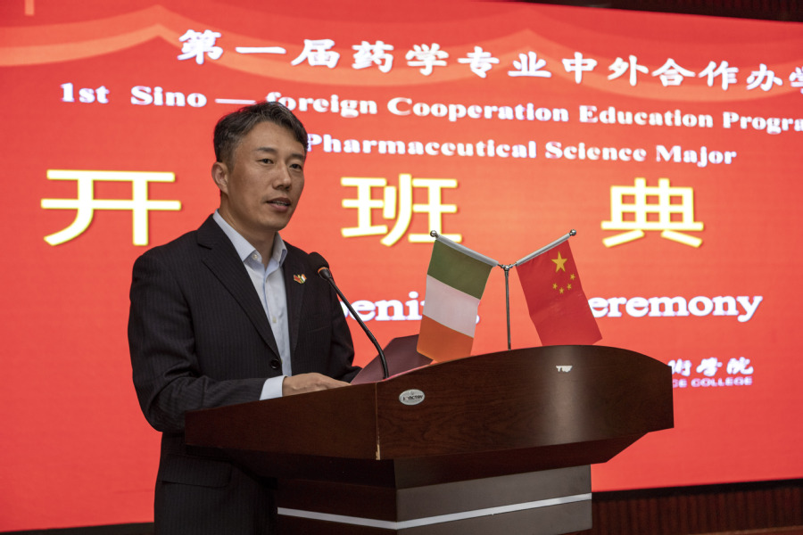开学典礼上,我校副校长贾韶千对大西洋理工大学嘉宾来访表示欢迎。他强调了这一合作对学校和学生的重要性,期待双方在未来深化合作,共同培养出更多优秀的药学专业人才。贾韶千鼓励学生们充分利用这次合作机会,积极参与学术交流,共同探索药学科学的前沿。