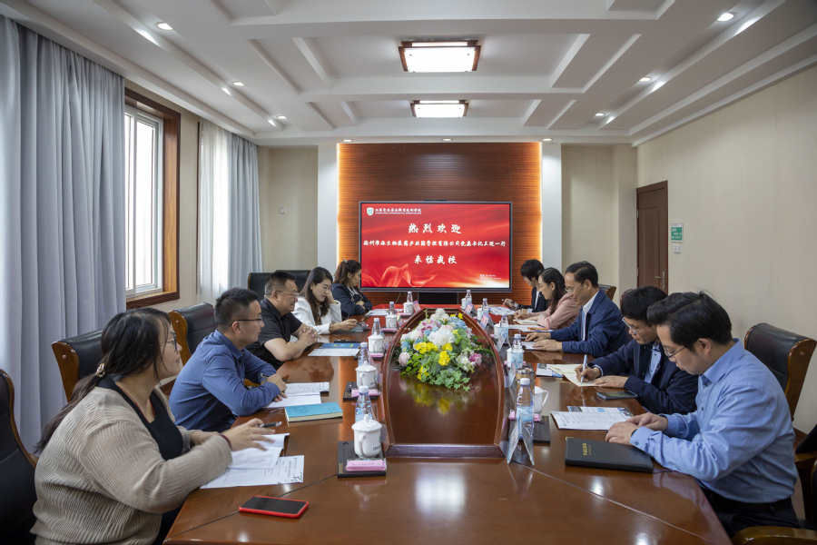 薛宇代表学校对王进一行来访表示热烈欢迎,并向来宾全面介绍了我校发展历程、目标愿景以及我校在人才培养、专业建设、国际合作等方面取得的成绩。薛宇表示,今后将进一步加强与淮海生物医药产业园的交流合作,不断开拓新思路,及时更换新赛道,全面贯彻新发展理念,澎湃发展新动能,持续推动我校高质量发展。王进表示,要充分发挥行业优势和资源优势,积极探索校企合作、产教融合新路径,共谋健康产业新突破。宾主双方围绕健康产业发展、产教融合等方面进行了深入的交流和研讨。