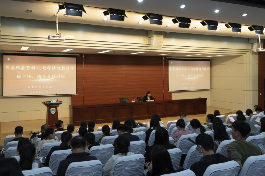 10月30日, “强基赋能育新人 培根铸魂担使命”班主任、辅导员培训班开班仪式在图书馆报告厅举行。校党委书记薛宇出席并讲话,党委学生工作部部长李金霞主持仪式。