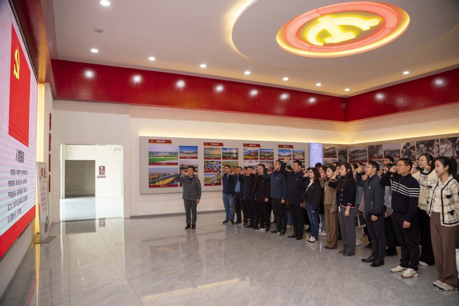 在讲解员的引领下,党员们走进抗战纪念馆,借助历史文献资料、现存实物资料、图片影视资料,大家深情回顾了一幕幕感人的英雄事迹,了解到“淮河大队”的成立及苏北抗日根据地的开辟历程。在瞻仰过程中大家不断被“朱氏三杰”等烈士的光荣事迹所感动,深切感受到“坚定信念,勇于奉献,敢于斗争,不怕牺牲”的苏北小延安精神,更加深刻地理解了我们党来自人民、植根人民、服务人民的崇高理念。随后,大家前往军事主题园区进行参观,通过实物展示、军事训练等方式进一步提升了他们的国防意识和拥军意识,深切体会到一个强大的国家必须要有一个强大的国防。最后,全体党务干部面向党旗重温入党誓词,再一次表达了为党的事业奋斗终身的决心。