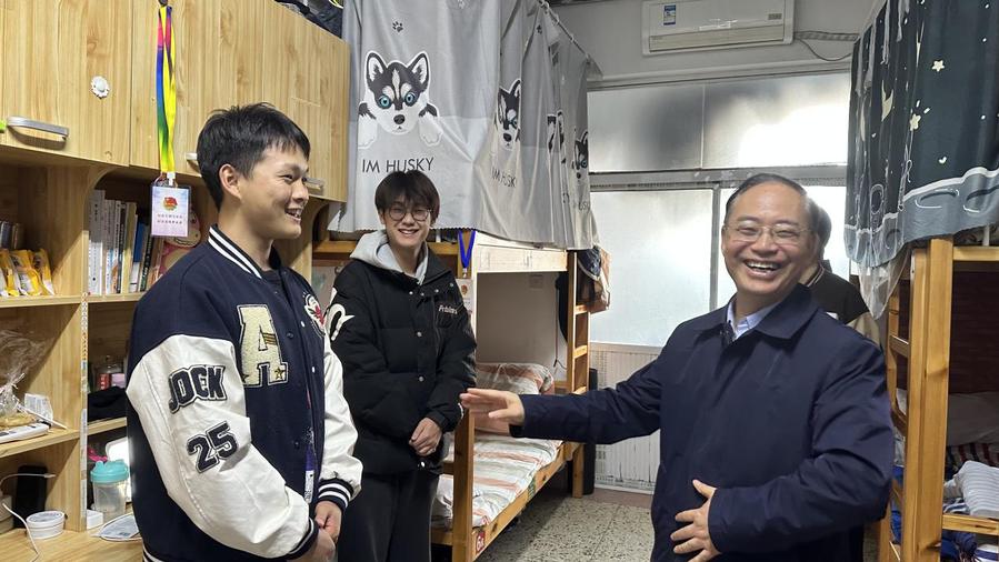 11月18日下午,党委书记薛宇深入社区开展调研,期间慰问了驻站辅导员老师、宿管阿姨,走访了学生宿舍。