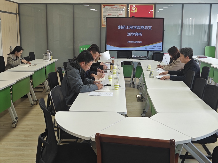 11月21日,党委委员、副校长贾韶千巡学旁听制药工程学院党总支理论学习组学习会,学习会由党总支书记王涛济主持,党总支理论学习组成员参加学习。