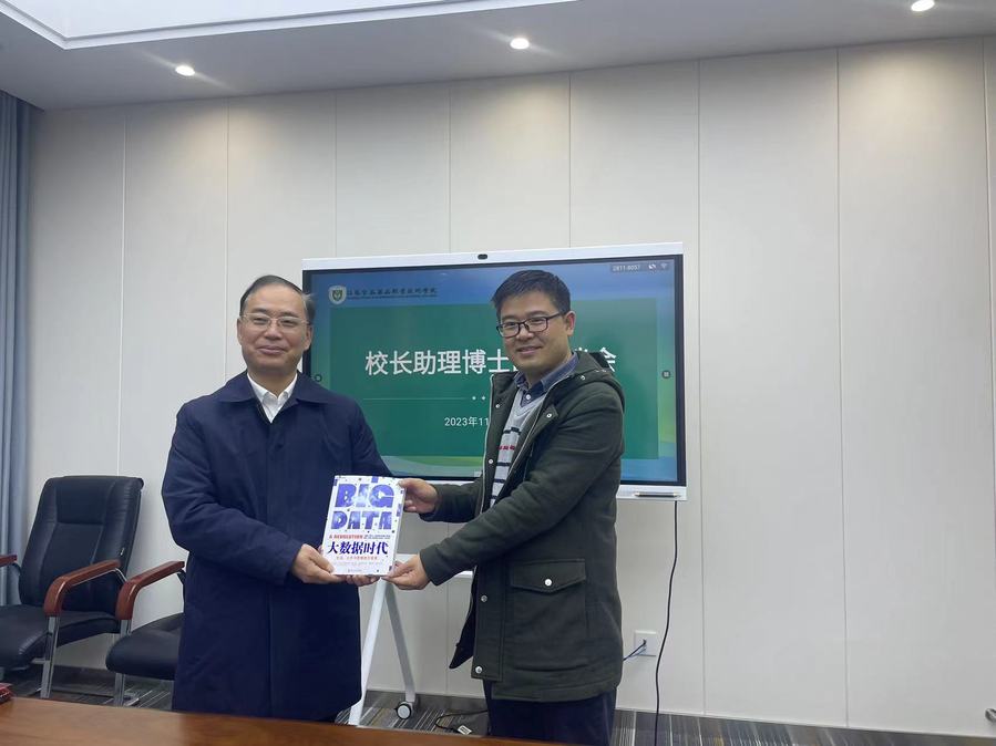 薛宇书记在讲话中对校长助理博士团一年来开展的工作及对学校发展所做出的贡献给予了充分肯定,并向大家介绍了学校近期取得的主要成绩。他指出,学校的发展离不开每一位教职工的努力,学校将坚持人才强校、教学优先、产教融合三大战略,也会为博士等高层次人才的成长提供便利和支持。作为学校党委书记,仍然会以各种方式参与和支持博士团的工作。薛宇书记向每位博士团成员赠送了一本精心挑选的书籍,并亲笔书写了寄语,希望博士们学有所成,不断取得进步,为学校发展做出更大的贡献。