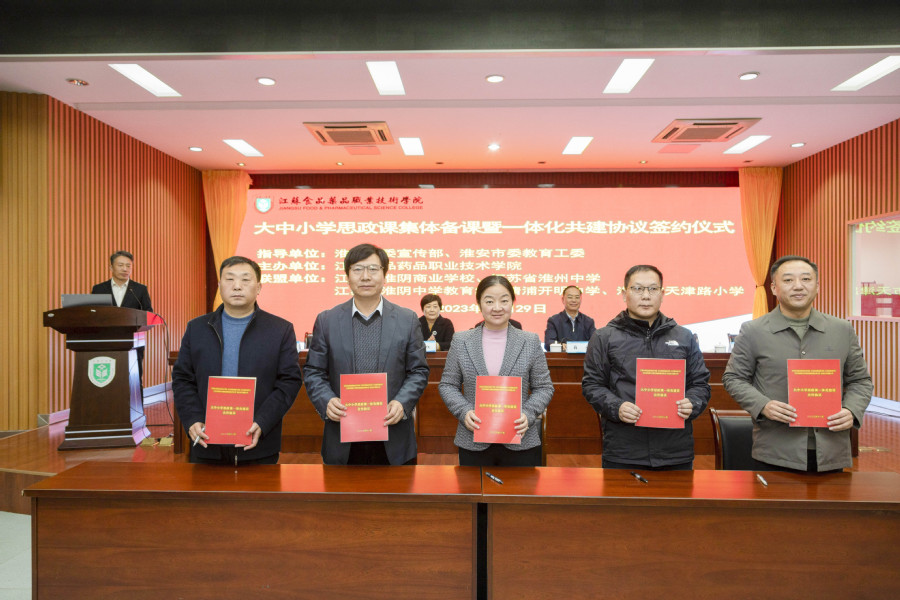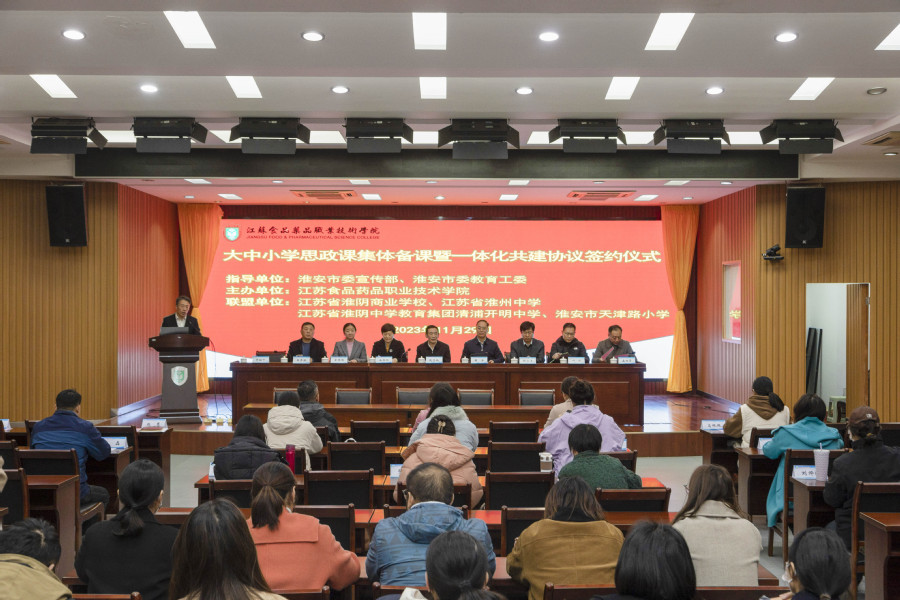11月29日下午,我校与江苏省淮阴商业学校、江苏省淮州中学、江苏省淮阴中学教育集团清浦开明中学、淮安市天津路小学隆重举行“大中小学思政课集体备课暨一体化建设合作签约仪式”。