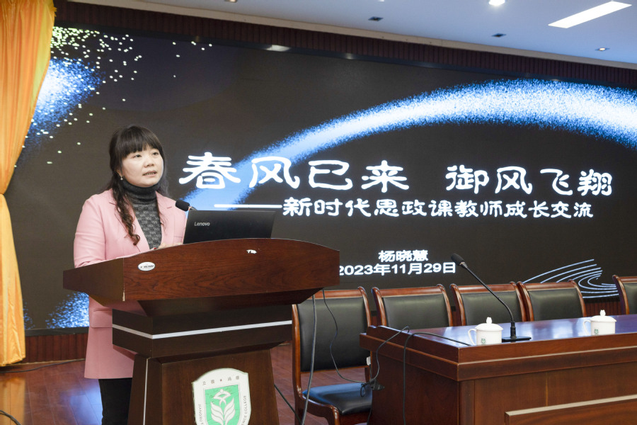 杨晓慧从“春风拂面:奋进正当时”“角色成长:终身必修课”“御风前行:破茧终成蝶”等三个方面阐述了思政课教师如何“站上讲台”“站稳讲台”“站好讲台”等问题。她动情呼吁全体思政教师要守好主阵地,厚植爱国情,主动担当思政课关键课程的“铸魂育人”使命。