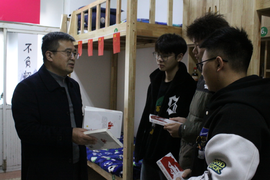在入党积极分子宿舍,张军向学生送上《绽放吧,青春榜样——百名优秀高职学生党员风采录》一书,以书中优秀学子事迹勉励学生刻苦学习、笃行不怠,争取能够通过实际行动早日加入党组织。此外,张军还参观了人工智能学院第二届“齐室妙想”宿舍装饰大赛优秀宿舍,欣赏宿舍文化节中学生宿舍装饰成果。宿舍长就装饰特色和主题,向前来参观的领导老师细心讲解各自宿舍的装饰理念及宿舍文化内涵。