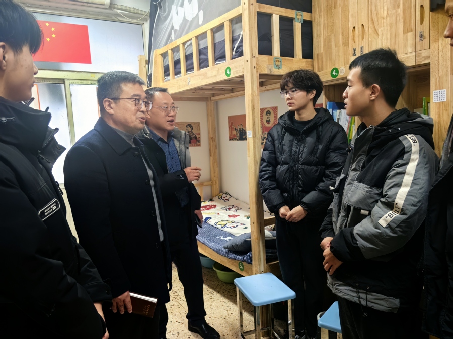 走访期间,张军与同学们亲切交谈,了解同学们的家乡、家庭情况、专业学习情况、入校感受等,并就学生们提出的生活和学习方面的问题进行解答。他指出,同学们要加强自我防范意识,自觉遵守宿舍各项管理规定,坚决杜绝宿舍内违规用电等违纪行为。同时,张军仔细地询问并听取学生对食堂卫生、服务质量、饭菜价格等方面的意见和建议,调研了解自助售货机、洗衣机、公共洗衣房等公共服务设施建设运行情况。