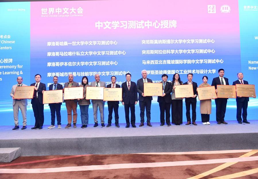 12月7日至9日,首届世界中文大会在北京国家会议中心召开。中共中央政治局常委、国务院副总理丁薛祥出席大会并发表主旨讲话;教育部部长、中国科学院院士怀进鹏主持全体会议;教育部副部长、国家语言文字工作委员会主任、中国工程院院士陈杰出席大会主论坛并致辞,教育部中外语言交流合作中心主任马箭飞主持主论坛。我校校长翟玮玮应邀参加大会主论坛及全体会议。