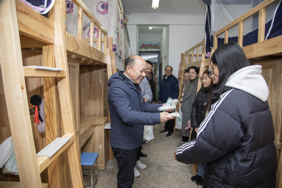 走访期间,安进详细了解同学们的学习生活情况,并为同学们送上药妆社自制护手霜,鼓励同学们学好专业知识,提升自身能力,不虚度大学的美好时光。同时,安进仔细地询问并听取学生对热水价格、公寓设施、校园环境等方面的意见和建议,调研了解热水机、公共活动室等运行情况。