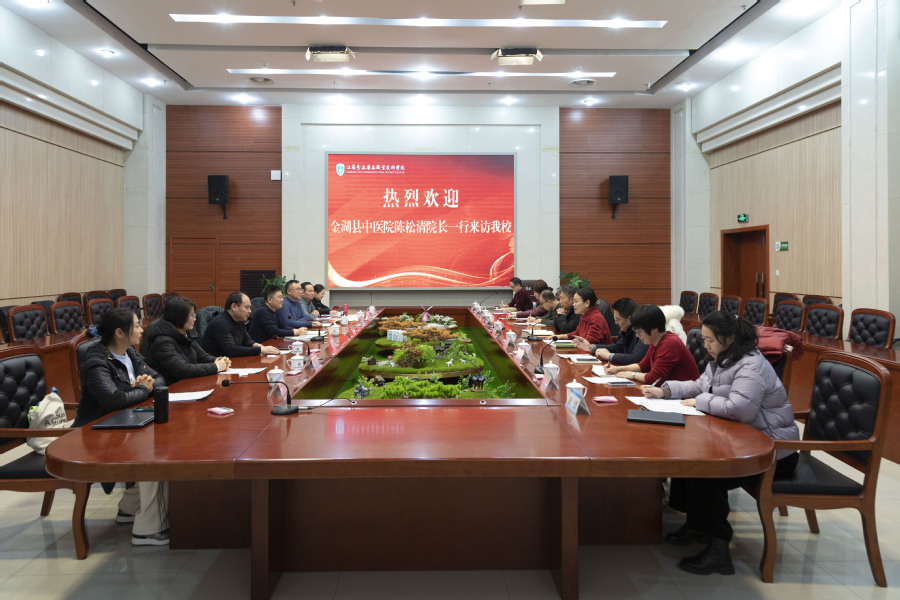 1月11日下午,金湖县中医院院长陈松清、江苏承开中药有限公司董事长孙大正等一行7人来我校考察交流,我校副校长贾韶千热情接待了来宾。